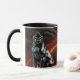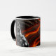 Un mug à l'image féline d'une panthère noire assise au premier plans d'un champ de lave en fusion.
