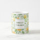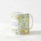 Papier peint vintage imprimé de roses jaune citron et feuillage vert sauge. Étiquette blanc et vert doux Personnalisez-le avec un nom.