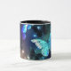 Fabuleux, brillant, bleu et jaune, papillon de nuit sur arrière - plan foncé.