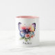 Un joli papillon multicolore avec des fleurs de corail rose et clair et des feuilles verts.