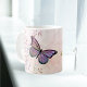 Des papillons mauves, roses et dorés sur un arrière - plan rose.