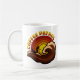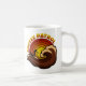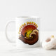 Patrouille du café. Surfez avec une tasse de café en surfant sur une vague de café avec un coucher de soleil dans l'arrière - plan. Style rétro les années 70 en détresse.