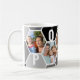 Canette à café Honeypeb, personnalisée avec 5 de vos photos préférées et imprimée avec un nom de 5 lettres, comme POPPY. Le design comprend un collage photo en nid d'abeille dans une palette de couleurs monochromes de noir et gris. Si vous souhaitez modifier les couleurs, cliquez sur "customiser plus loin" et cliquez sur chaque hexagone que vous souhaitez modifier.