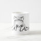 A simple b&w illustration of a woman in playful cat ears peering over the words Cat Lady.