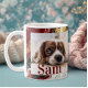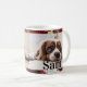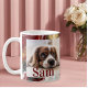 Show off your beloved pet with opulent style! This striking ceramic mug features a large space for your favorite pet's photo, framed by a luxurious border of deep red, black, and white marble textures, highlighted with shimmering faux gold veins.