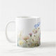 Pierre le lapin avec un arrière - plan fleur sauvage et un accueil de Pâques heureux