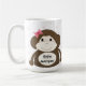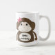 Dégustez votre verre avec cette tasse ornée d'un petit singe humoristique avec un large sourire, une fourrure brun foncé et un arc-en-cheveux rose. Il est dressé contre un arrière - plan blanc tressé de points roses et encadré par une bordure rose. L'expression "petit singe" est personnalisable à votre goût.