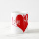 Tasse blanche comportant le slogan de "philtre d'amour" en rouge contre un coeur rouge. Police gothique magique. Perfectionnez pour des fans et Muggles de Harry Potter de même.
