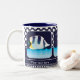 Mug bleu marine avec vos propres photos préférées encadrées par un design de pois rétro. Cette tasse est également disponible en d'autres couleurs. Ravi de créer un pour chaque membre de la famille ou tout le monde dans le bureau!