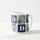 Customisez ce mignon design de tasse moderne pour célébrer un nouveau papa cette Fête des pères! Les caractéristiques de design alternent les carrés de photos et les blocs de lettres bleu marine épelant "daddy" dans les lettres serif modernes. Ajoutez cinq de vos photos carrés préférées (parfait pour Instagram !) en utilisant les modèles fournis.