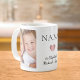 Mug personnalisée pour la meilleure nana jamais avec 2 photos de ses petits-enfants, "NANA" en typographie élégante et un coeur d'or rose. Ajoutez les noms de ses petits-enfants.