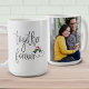 Tasse à café romantique pour la Saint Valentin, cadeau Fiançailles, Anniversaire ou juste parce que! Le modèle photo est configuré pour vous permettre d'ajouter votre photo à un côté de la tasse. L'autre côté est écrit à la main avec les mots "ensemble pour toujours" et décoré avec des inséparables qui s'embrassent.