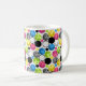 C'est l'impression parfaite pour tous vos joueurs de pickleball. Pourquoi ne pas prendre un café dans une tasse avec cette belle impression multicolore. de votre sport préféré. Elle est recouverte de boulettes bleues, jaunes, vertes, grises, blanches et même fuchsia disposées en cercle sur un arrière - plan blanc, tout simplement adorable !