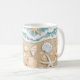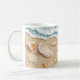 Cette tasse à café est montrée avec un joli imprimé d'art de coquillages de plage. Customisez cette tasse ou achetez comme prévu. Image sous licence