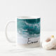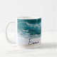Plage Vagues tropicales sable Nom moderne café Mug. Vibrant tasse de plage tropicale avec police de caractères manuscrite pour ajouter votre nom. Les commandes correspondantes sont disponibles à l'adresse truullc@gmail.com.