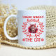 Un chaton de charme orné d'un col s'installe au milieu de feuilles d'automne et de décorations festives, demandant l'attention de Père Noël dans un accueil de vacances délicieux. Sur cette tasse de café de Noël.