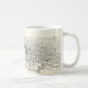 Un croquis monochromatique détaillé d'une ville animée avec un paysage urbain diversifié, avec une structure de château au centre, entourée de différents bâtiments, une rivière, et un pont.