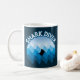Design graphique en silhouette de nageoire de requin. Mug pour la plongée qui aime nager avec des requins.