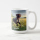 Un chien pointeur germanique tacheté court à travers un champ dans cette belle illustration.