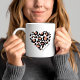 Tasse à café de nom personnalisé avec un joli imprimé de coeur motif animal de cheetah leopard tendance et nom personnalisé sur le côté.