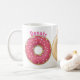 Saupoudré de beignets roses, chocolat et érable ornent cette tasse de café avec les mots "beignets et café". La combinaison parfaite ! Gardez cette tasse à portée de main et aidez à étancher votre besoin de beignets. Mais n'oubliez pas le café. Un grand cadeau pour les amateurs de beignes. Les images utilisées sur cet article sont sous licence officielle / © Graphics Factory.com