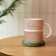 Ne plus jamais avoir la mauvaise boisson avec ce design personnalisé moderne. Vous pouvez personnaliser avec votre nom, la préférence de boisson (thé, café, lait, sucre, biscuits). Les arrière - plans roses et de sable peuvent être facilement changés, tout comme le texte. Un grand cadeau pour tout le monde.