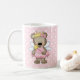 Un joli imaginaire avec une princesse d'ours vêtue d'une jolie robe rose avec des ailes de fées, couronne et baguette rose avec des coeurs blancs arrière - plan sur la plupart des produits.