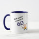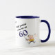 Cette tasse fait un cadeau mignon pour quiconque tourne le grand 60. Il présente votre texte personnalisé en texte stylisé bleu et noir. Actuellement, il dit "Toujours mettre' autour de 60". Un golfeur de bande dessinée prend un coup de fouet à sa balle sous le texte. L'image et le texte sont de chaque côté, avec votre nom ou autre texte personnalisé au milieu. Drôle !