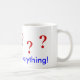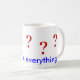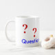 Points d'interrogation en rouge. 5 sont espacés autour de la tasse. Ci-dessous, un texte en bleu "Question tout"