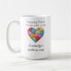 A cozy, handmade-inspired design featuring a colorful patchwork heart stitched together from vibrant fabric pieces. Above it, the phrase “Piece by Piece Made with Love” captures the care and creativity behind quilting, while the personalized touch with someone's name and then “quilting mug” adds warmth and individuality. —perfect for any quilting enthusiast.