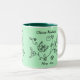 Ce mug prouve que parfois l'ordinaire est extraordinaire. Un beau vert, les lignes et le texte sur ce mug sont 'noirs.' Les papillons et les fleurs sont charmants et lui donnent un attrait romantique.