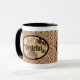 Les feuilles d'automne et le mot "Grateful" sont encadrés d'un ovale noir et tourbillonné et carrelé feuilles d'automne sur cette tasse.
