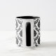 A vintage style decorative damask surface pattern influenced by rococo classical design in black detail on a white background.