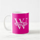 Mug Rose et blanc | Monogramme simple de nom de famill