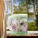 Photo tasse personnalisée avec vos propres photos encadrées de roses roses sur un arrière - plan vert artistique. Joli comme un mariage ou un gardien d'anniversaire ou pour dire Merci à vos servantes d'honneur.