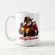 This image features a rugged Santa wearing a cowboy hat and a red scarf over his traditional suit. He has a warm smile, a thick white beard, and is holding a brightly glowing antique lantern. The text "Merry Christmas" is displayed below him. A pine branch peeks over his shoulder, adding a touch of holiday nature to this unique, Western-themed Saint Nick.