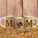Ajoutez une photo à cette tasse personnalisée unique pour un cadeau spécial pour votre maman rodéo préférée cette fête des mères. Le design comprend un arrière - plan en bois, une police de style occidental et la lettre "O" formée par une corde en lasso encadrant la photo.