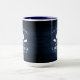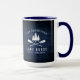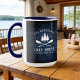 Un beau thème rustique, une grande tasse à café à deux tons avec votre nom de famille et "Lake House" ou tout autre texte souhaité, ainsi que sa date et son emplacement établis. Ce design personnalisé et unique présente une silhouette blanche de barques croisées et de pins sur un imprimé de planches de bois aux couleurs bleues riches. Pour voir d'autres modèles comme celui-ci, n'hésitez pas à visiter ma boutique ici à "Zazzle.com/Rustic_Charm". Merci .
