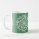 Ce mandala blanc est assis sur un arrière - plan gris-vert. Les couleurs sont naturelles et relaxantes. Partie de la collection Payon Mandala.