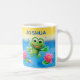 Saut du cadeau en céramique fait sur commande de tasse de partie de grenouille. Une de mes illustrations préférées. Cette petite grenouille de saut aime des anniversaires et des parties tellement qu'il saute juste hors de l'image. Perfectionnez pour les articles de la partie de n'importe quel enfant, vous la trouvera sur des cartes, des invitations et des plats et divers habillement d'enfants. Tous avec des âges et des noms personnalisables pour la partie travaillée parfaite.