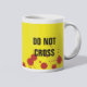 Mug jaune avec deux champs de texte personnalisés "SCÈNE DE CRIME", "NE PAS TRAVERSER". Taches de sang.