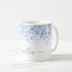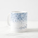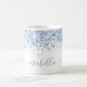 Un élégant arrière - plan blanc, décoré avec de la poussière de parties scintillant en faux bleu. Personnalisez et ajoutez votre nom écrit avec un script de style à la main tendance avec des swashes. Pour que les swashes ne suppriment que le nom de l'échantillon, laissez les espaces ou émoticônes devant et après le nom.