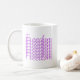 Cette élégante tasse à café présente le mot Liberté répété dans un empilement cursif fluide, ombré dans des dégradés de pourpre riche qui évoquent la force, la sérénité et l'expression de soi.