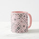 Caricature abstraite moderne à damiers plaid fleurs rose floral gris