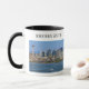 La vue de bateau de croisière au départ du Port de Seattle sur Puget Sound avec la ligne d'horizon du centre-ville et fantastique Mont Rainier. Une tasse de café souvenir parfait de la beauté de Seattle, Washington.