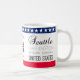 Seattle est ma tasse à café patriotique stylisée pour n'importe qui. Texte noir Seattle, Washington, États-Unis, coordonnées géographiques sur deux côtés d'une tasse. "Fier d'être un Américain" image dans le centre. L'image est une composition de l'étoile blanche sur la carte américaine couverte du drapeau et un texte stylisé. CONSTANTINE'S HOME TOWN modèle texte sur et sous l'image centrale. Le ruban de couleur bleu du drapeau américain, décoré d'une image d'étoiles blanches en rangée, longe le bord supérieur d'une tasse, le ruban rouge du drapeau américain au bas de la tasse. Personnalisable . Vous pouvez modifier toutes les images et vous pouvez modifier ou supprimer deux textes modèles indépendamment. Si vous devez déplacer des images, modifier la police et la couleur de la police, utilisez le bouton Personnaliser. Soyez créatif, customisez, achetez le beau cadeau pour les membres de votre famille, les amis, ou pour vous-même, profitez, et soyez heureux!