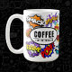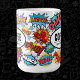 Super amusant et unique bande dessinée son discours bulle thème tasse de café qui va égayer n'importe quelle maison, bureau ou tout endroit créatif qu'il va. Ce design contient des graphismes brillants, audacieux et colorés avec le mot vedette Café avec la sous-rubrique "rester caffiné". Cette composition chic, tendance et boho remplie d'illustrations audacieuses d'effet pop énergique que vous verriez dans n'importe quel livre comique. Ce design fera parler et en vouloir à tout le monde.