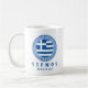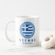 Sifnos, tasse à café de Grèce arborant le drapeau national de la Grèce à l'intérieur d'un cercle grec bleu aztèque. Cette tasse est parfaite pour boire son café pendant vos vacances à Sifnos, en Grèce ou si vous êtes fier d'être de Sifnos.