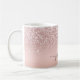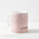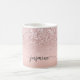 Mug personnalisé avec monogramme en écriture script et paillettes métallisées Rose Gold Glamour Féminin. Ces modèles présentent votre prénom dans un joli style manuscrit avec une typographie à queue en arabesque sur un fond de faux foil métallisé rose gold et rose blush avec une bordure scintillante glamour. Ceux-ci sont faciles à personnaliser. Cadeau de crémaillère élégant et féminin, également pour un anniversaire, la fête des mères, un mariage, une fête d'anniversaire pour les 16 ans, une douche de mariée, une baby shower, pour une fête de fin d'études et c'est pour la fille qui aime les choses uniques et élégantes avec une touche de scintillement.