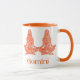 Mug dans le symbole du soleil astrologique signe Gemini, dans un motif abstrait de corail orange, pêche et blanc